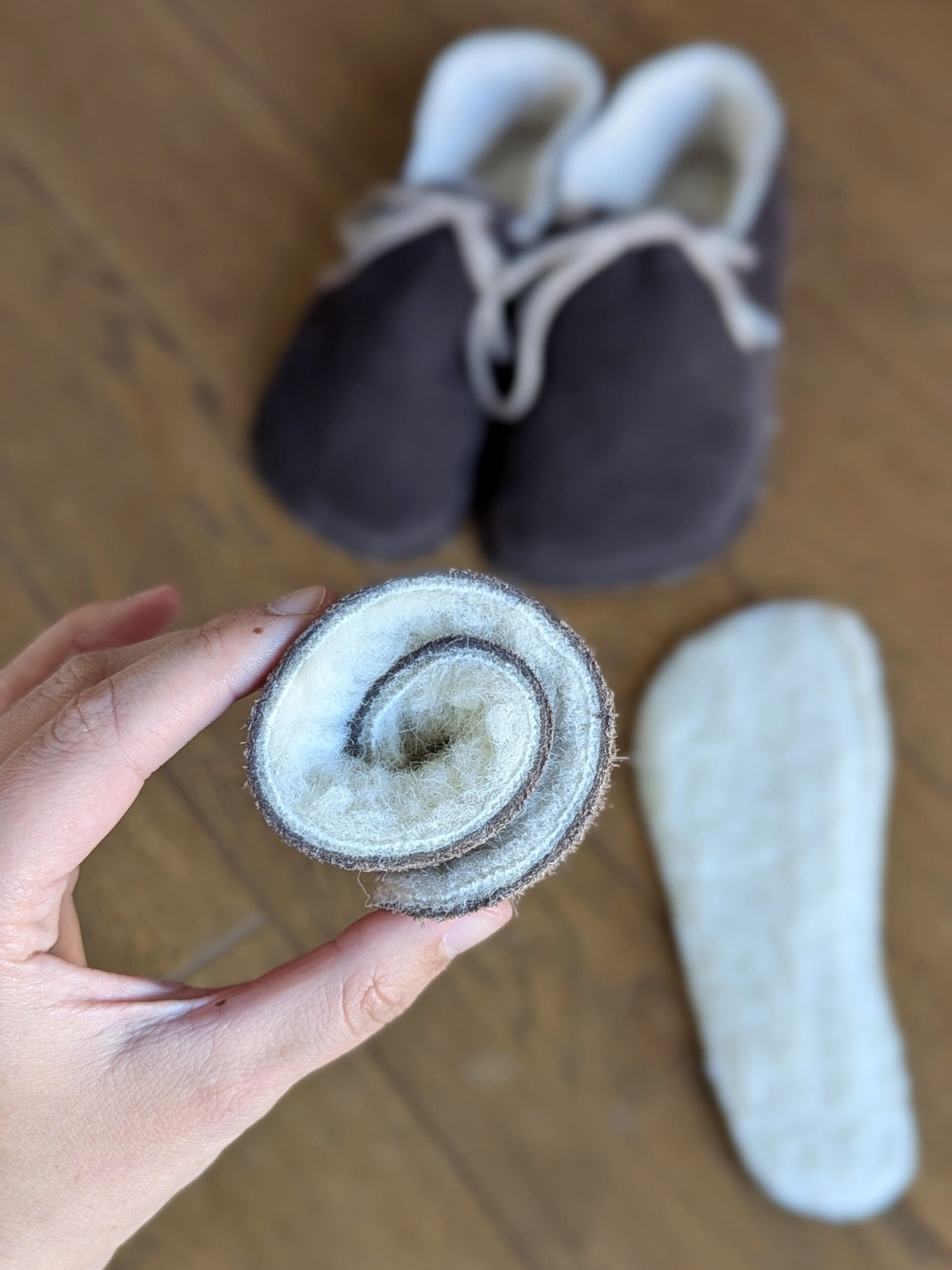 Wykonane są z naturalnej skóry od spodu i miękkiej wełny merino od góry- zapewniają ciepło, wygodę i naturalną regulację temperatury.